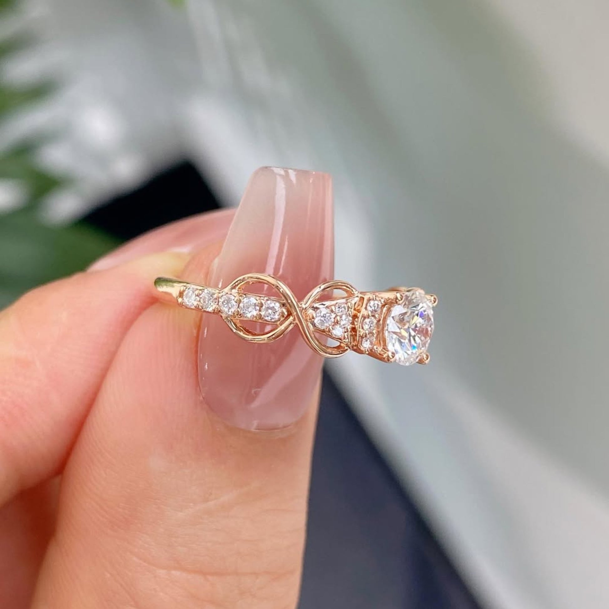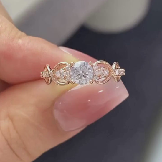 Round Cut Moissanite Diamond Vintage Inspired Engagement Ring