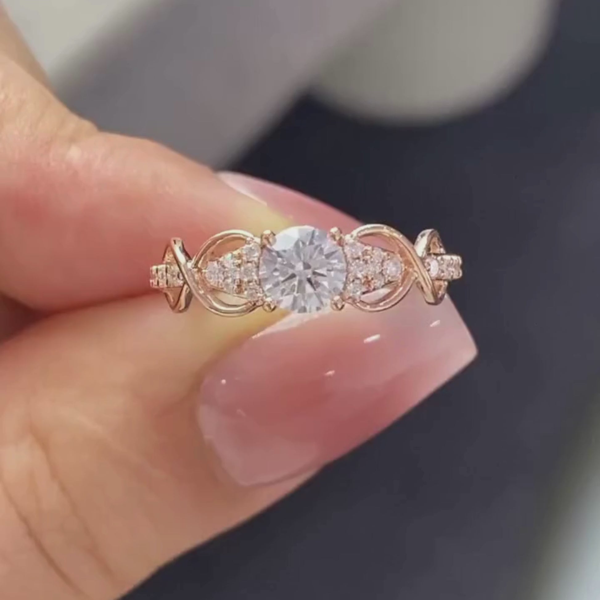 This ring features a graceful twisted gold band adorned with sparkling side accents for added brilliance. The elegant openwork design enhances the center diamond, creating a romantic and timeless look. Crafted in warm gold with a lab grown diamond, this ring blends classic charm with modern sustainability—perfect for engagements, anniversaries, or a meaningful heirloom-style statement.