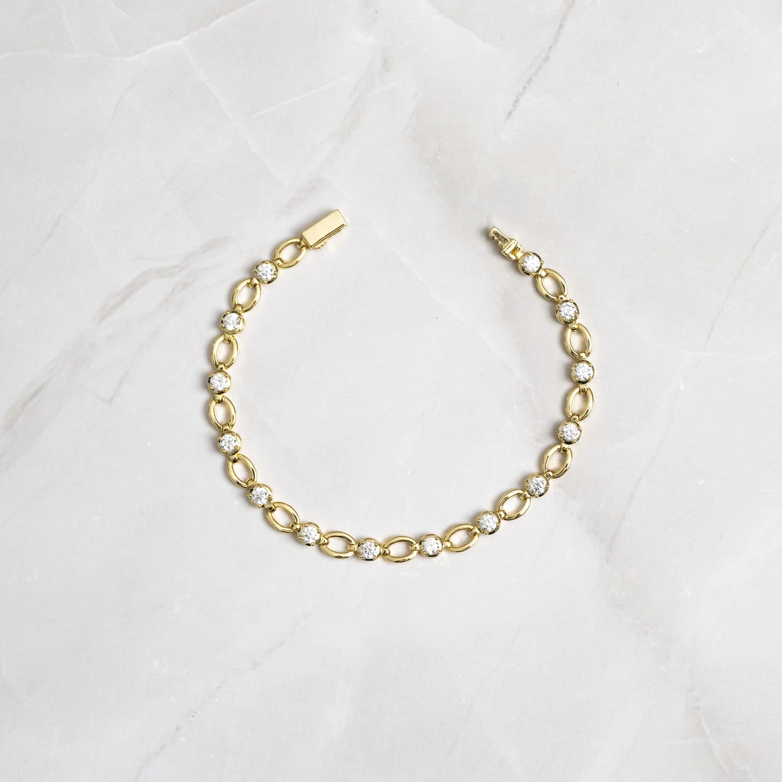 Gracefully designed with 2.80 TCW round Moissanite diamonds, this bezel link bracelet radiates refined brilliance and modern elegance. Each diamond is securely framed in solid gold, creating a smooth, luminous flow around the wrist. Perfect for everyday luxury or special occasions, its minimalist silhouette offers timeless charm, exceptional comfort, and sustainable beauty. A sophisticated piece that elevates your jewelry collection effortlessly with lasting sparkle.
