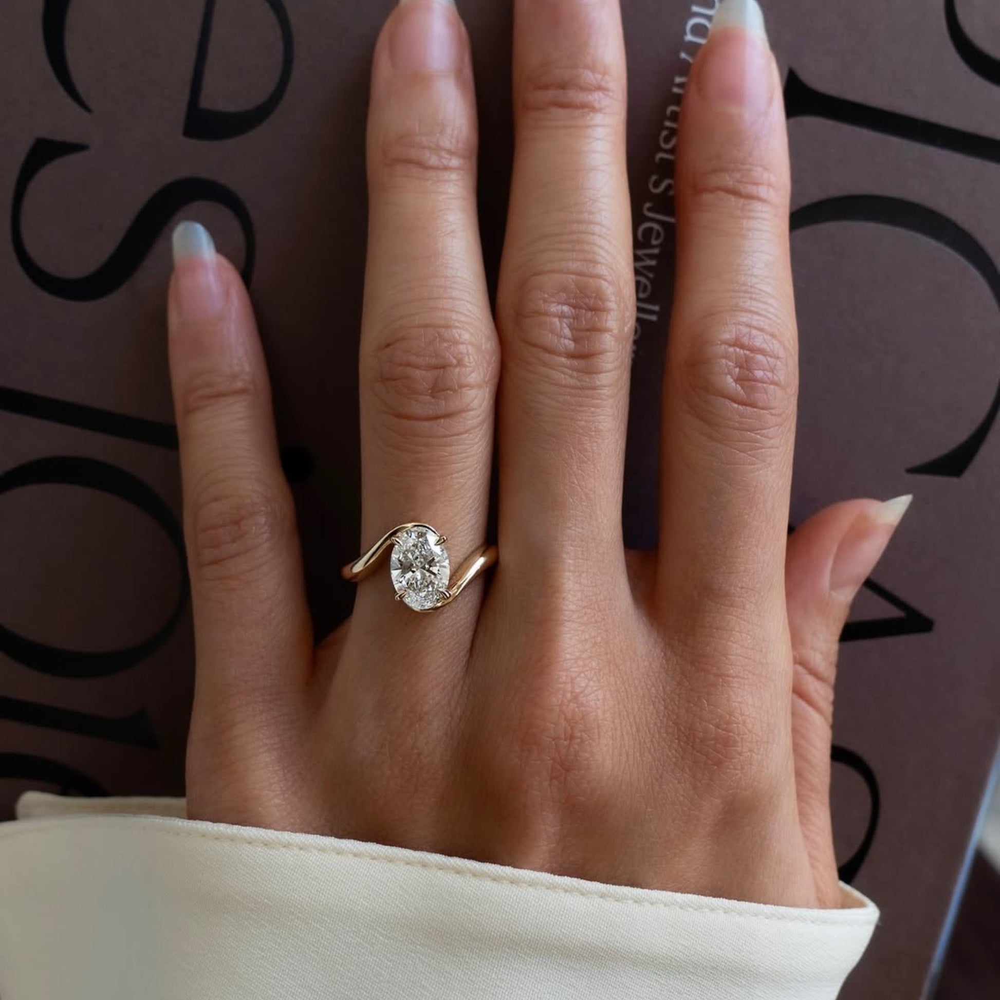Oval Cut Moissanite Engagement Ring – Bypass Solitaire Wedding Ring
