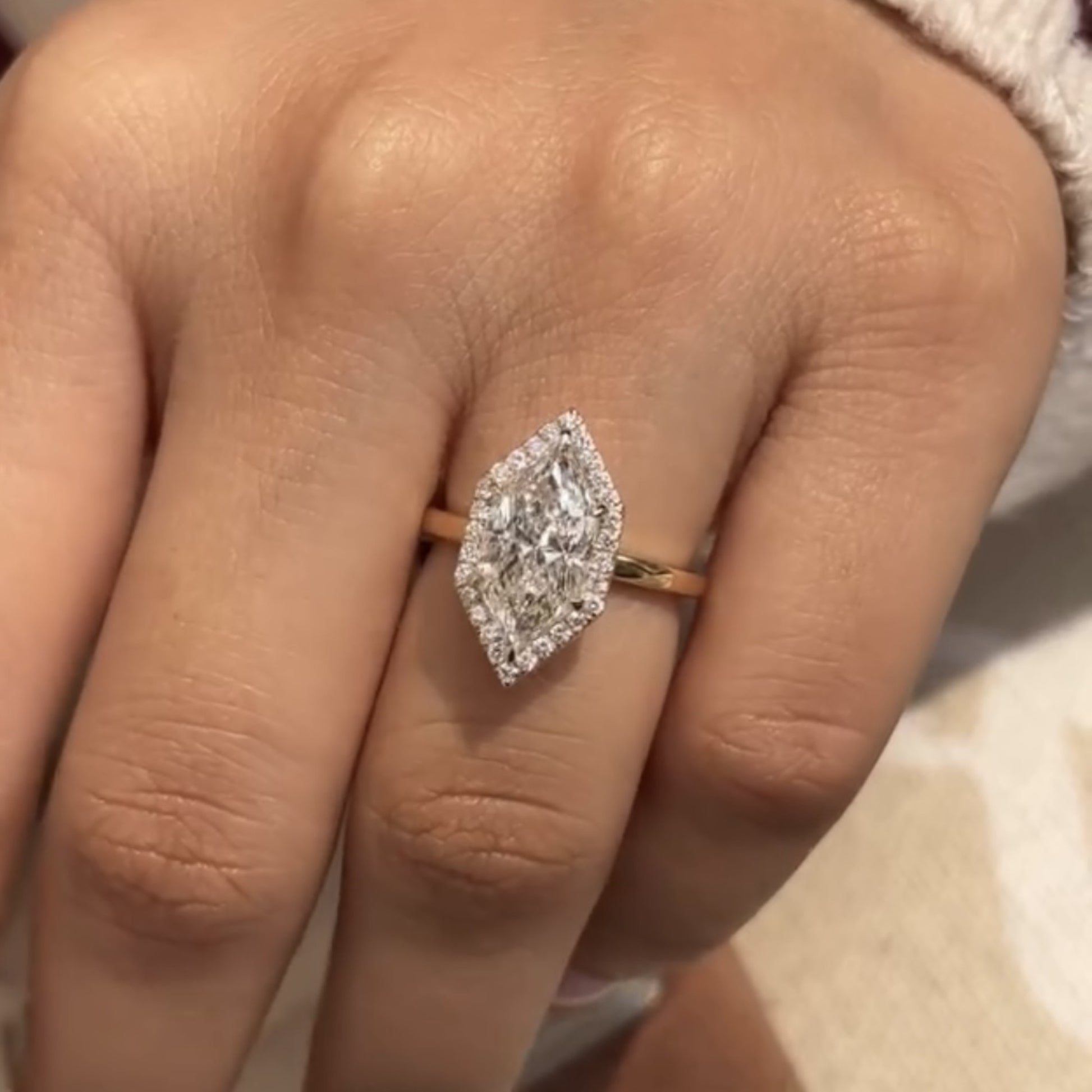 Dutch Marquise Halo Lab Grown Engagement Ring in Solid Gold