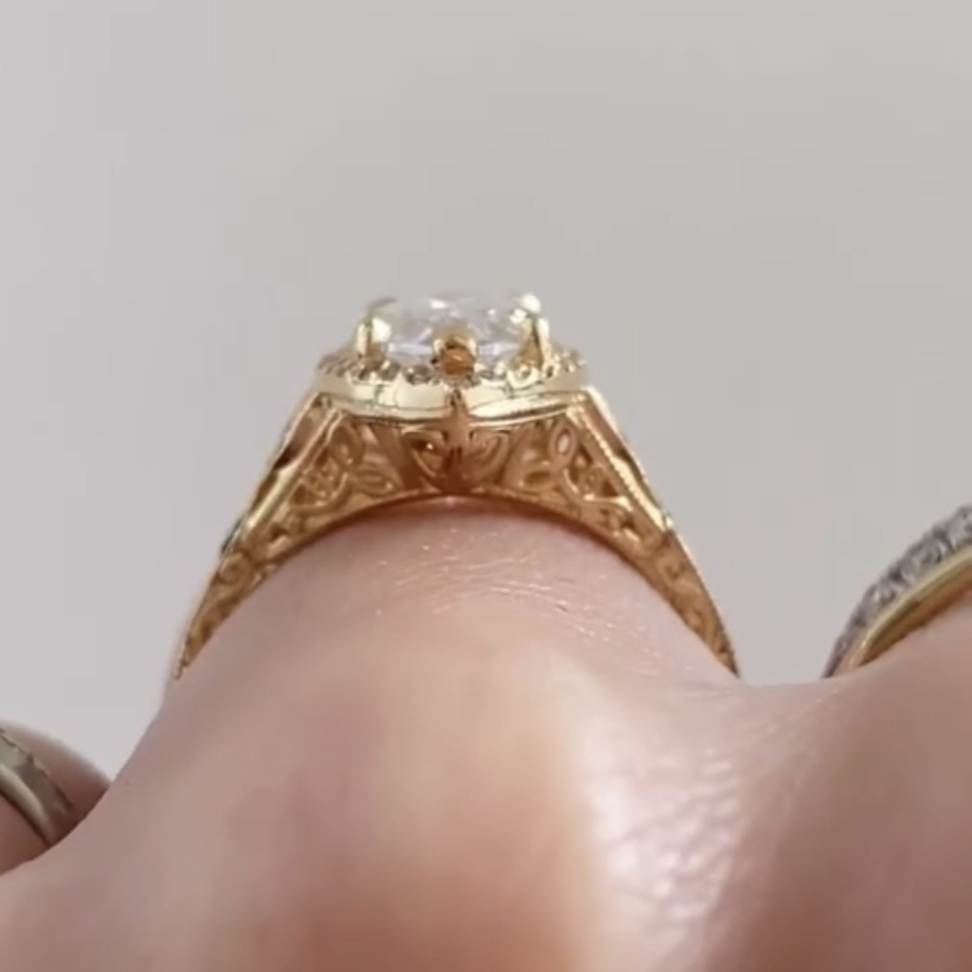 Marquise Halo Lab Grown Engagement Ring – Vintage Inspired Elegance