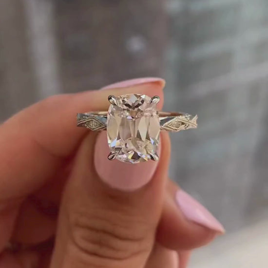 This breathtaking 3.00 CT old mine elongated cushion lab grown engagement ring blends vintage charm with modern craftsmanship. The softly faceted center stone delivers a romantic glow, while the intricate pavé and engraved band adds timeless elegance. Expertly crafted for brilliance and durability, this ring is an ethical, sustainable choice—perfect for celebrating everlasting love with a refined antique-inspired design.