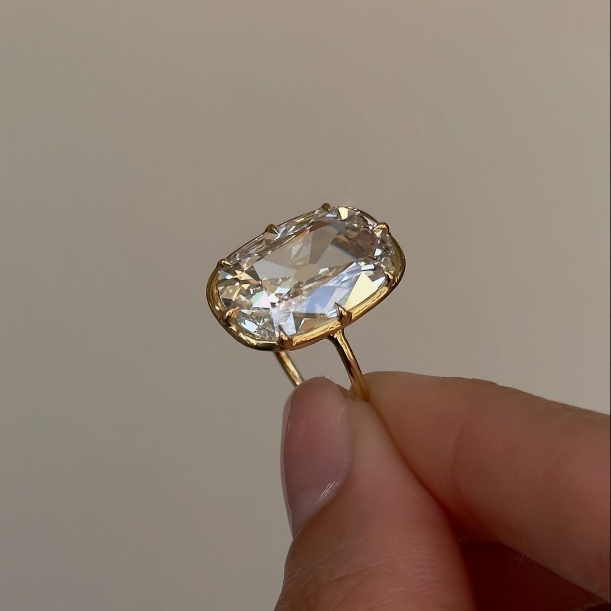 Old Mine Elongated Cushion Lab Grown Engagement Ring – Bezel Set Gold Wedding Ring