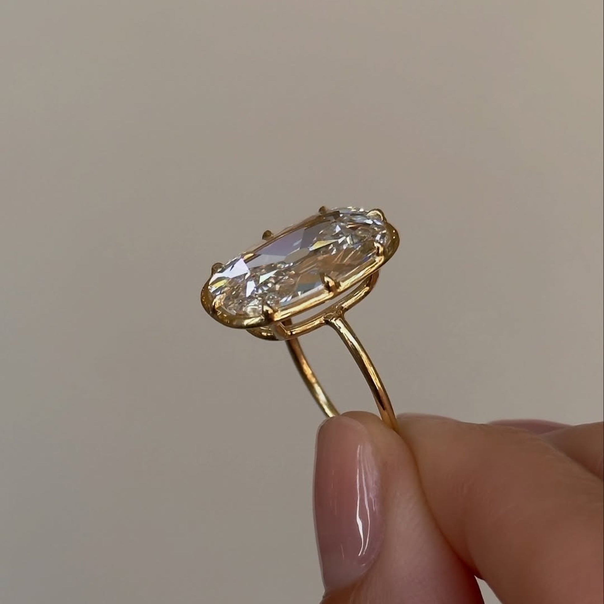 This stunning old mine elongated cushion lab grown engagement ring showcases vintage-inspired charm with a modern touch. The softly faceted cushion-cut diamond is beautifully secured in a sleek bezel setting, enhancing its antique character while offering everyday durability. Crafted in warm gold, the minimal band highlights the stone’s unique shape and glow, making this wedding ring perfect for lovers of timeless, understated elegance.