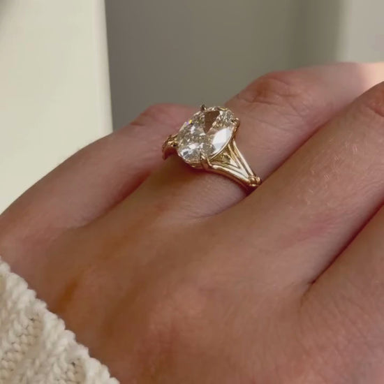 This timeless oval cut lab grown engagement ring is crafted in solid gold for a classic yet elegant look. The brilliant oval diamond is securely set in refined prongs, creating a graceful elongated silhouette that flatters every hand. A softly tapered band adds subtle detail while keeping the focus on the center stone. Perfect as a solitaire wedding ring, it blends everyday wearability with everlasting brilliance.
